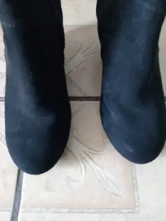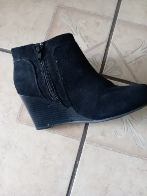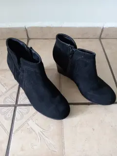 Botines modernos de gamuza. Con cierres a los costados, puntas redondas, tacón de cuña y bajo por lo que son cómodos