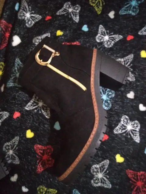 Botines negros. Lindos botines negros nuevos de gamuza y evilla, de tacon