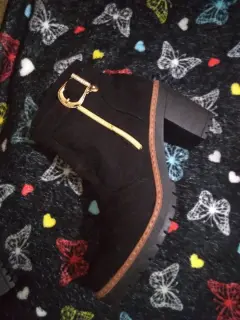 Lindos botines negros nuevos de gamuza y evilla, de tacon