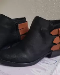 Botines negros con cinta cafe. Comodos botines negros con cintas cafesTotalmente nuevosTacon bajos no. 2