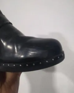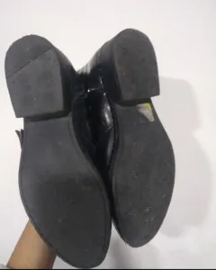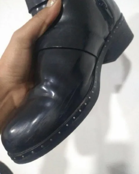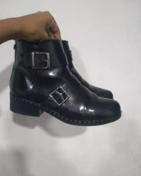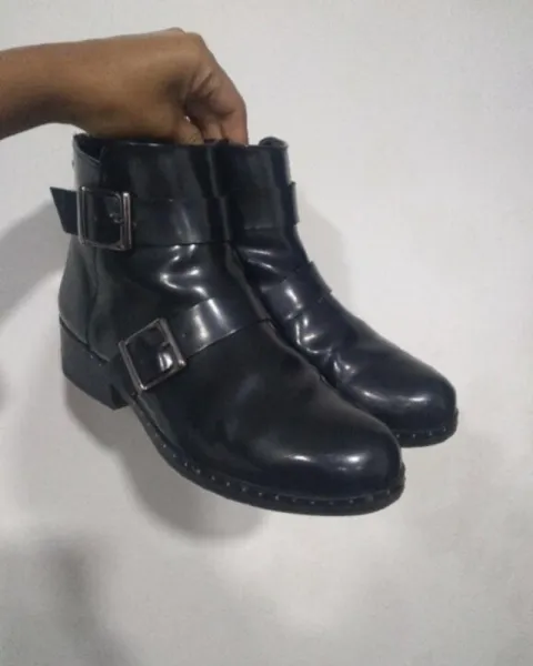 Botines de charol de la marca EFE, subo fotos de las suelas para que las puedas ver y en las últimas dos fotos podrás ver los detalles que tienen que son unos pequeños rayones, tienen como un tipo de estoperol alrededor que los hace ver como muy rockeros.