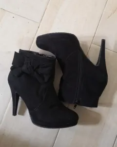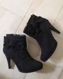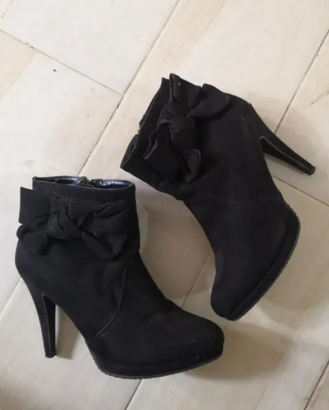 Botines negros gamuza. Li dos boti con moño en el costado los hacer ver increíbles