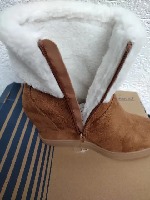 Botines NUEVOS en caja, color camello, interior peluche muy calientitas, plataforma, talla 25 Mexicano
