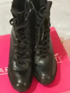 Botines negros talla 38.5, tienen tacón de 9.5 CM, suela antiderrapante en la suela, sin detalles se usaron una vez y se guardaron, ajuste mediante agujetas y cierre