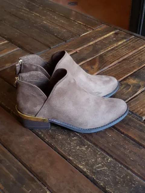 Bonitos botines en color topo, de corte sintético efecto gamuza, de suela sintética con tacón de 6cm*Talla 3 pero pueden quedar tambien a 3.5 porque no hay medios en este modelo* Sin detalles son nuevos*Calificación:10*PRECIO FIJO NO OFERTAR*