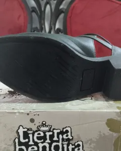 Botines Tierra Bendita. Bonitos botines color negro, talla 24cm (4). En perfecto estado. Cuenta con dos correas ajustables. Tacon 4 cm. Corte sintético, forro textil y suela sintética.