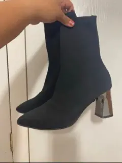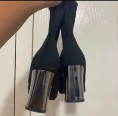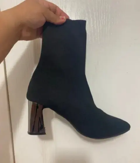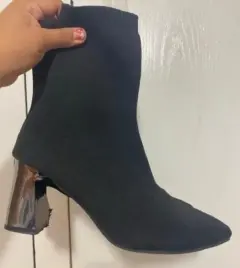 Botines tipo calcetín de tacón efecto espejo un solo uso, en perfectas condiciones #4.5 vienen amplios quedan a #5 lucen muy bonitos, para completar tu oufit se ven muy bien 👍 solo que a mi me quedan poco grandes 😊