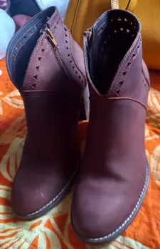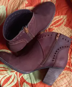 Hermosos botines vaqueros de piel, color chocolate, tacon comodo de 7 cm, ideales para combinar con todo, tienen cierre lateral interior