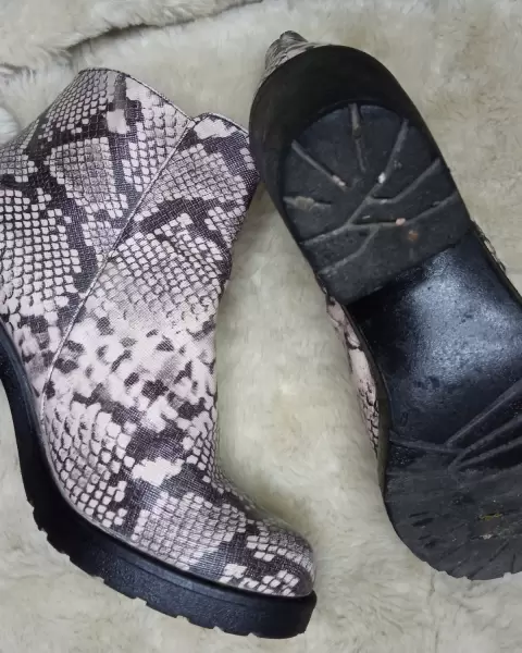 Botines de plataformaSimulando piel de víboraSin ningún detalleCierre en el costado.¡Súper comodas!Vienen fiel a su talla.