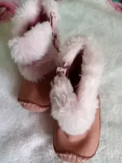 Botin rosa para bebe #11, color rosa , peluche por fuera con un moñito muy coqueto