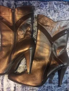 Hermosos botines, color cobre, tacón mediano, son no. 6.5 pero quedan perfecto a 5.5 y también 6