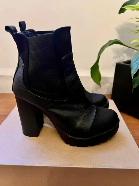 Botines negros, punta redonda de terciopelo, tipo piel con 10 cm de altura, súper cómodos!