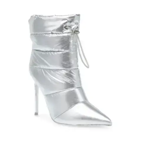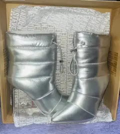 🤩hermosos botines Steve Madden🤩. Totalmente nuevos color plata talla 3.5 viene un poco reducido le quedaría muy bien a una talla 3 o 2.5 originales y en caja 💥