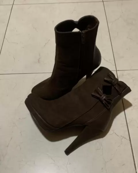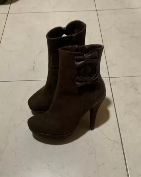 Botines LADY PAULINA color café con moños al costado NUEVOS Punto: 23Tacon: 10.5