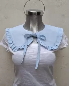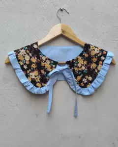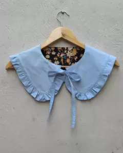 Cuello bobo desmontable artesanal. Hermoso cuello bobo artesal doble vista de un lado completamente azul cielo y del otro floriado con olan y cordones azul cielo un lindo toque para tu blusa,sueter o vestido