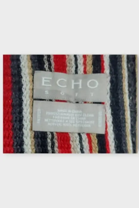 ECHO Bufanda Acrylic Multicolor. ECHO Bufanda Acrylic MulticolorMarca: ECHOOrigen: ChinaMaterial: 100% AcrylicTalla: UnitallaEstilo: RayadoPatrón: RayasColor: MulticolorAncho: 21 cmLargo: 260 cmArticulo de USO en excelente estado