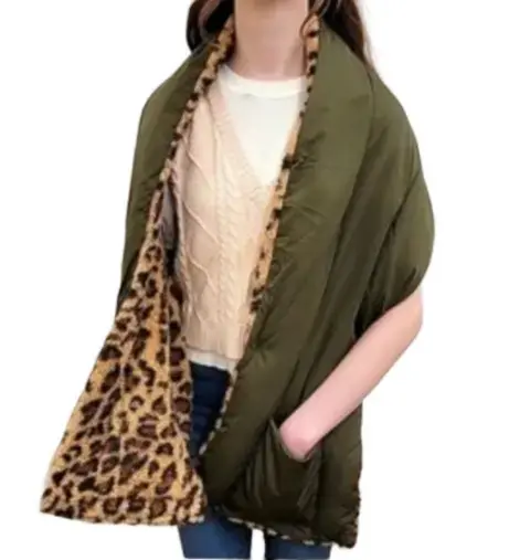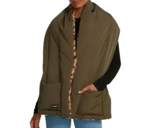 🌻 Steve Madden poncho acolchado a presión para mujer con bolsillos 🙂🌻 Color verde militar 💚 forro de animal print☺️🌻 Bolsillos al frente 😊🌻 Súper suave, cómodo y cálido 👌 te mantendrá abrigado en estos días fríos 🥶☺️🌻NOTA: el color puede variar un poco del original dependiendo de la luz y de la cámara 📷