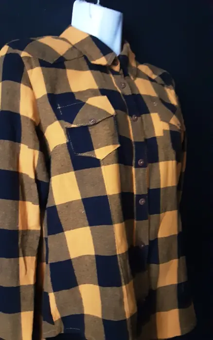 Blusa a cuadros. Blusa a cuadros manga larga amarillo con negro de algodón con una pequeña bolsa del lado izquierdo