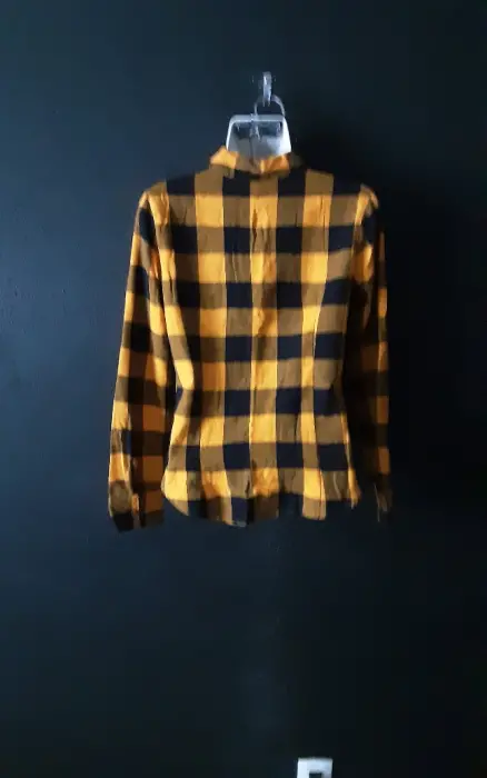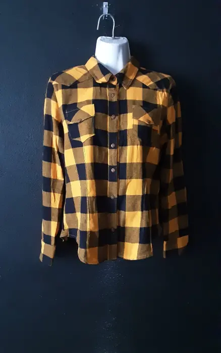 Blusa a cuadros manga larga amarillo con negro de algodón con una pequeña bolsa del lado izquierdo