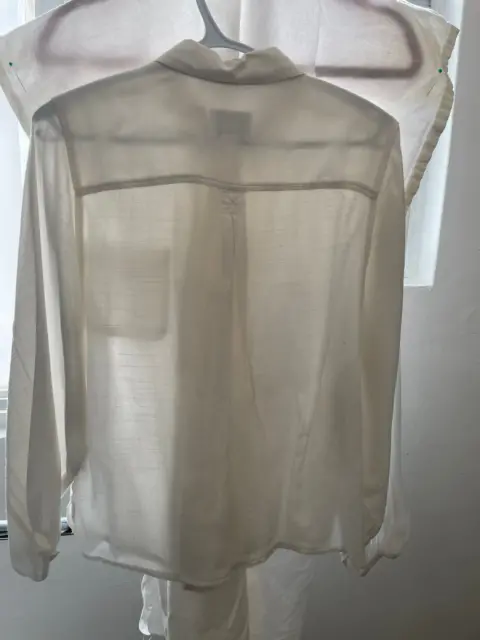 American Eagle Blusa BlancaColor Blanco Talla XSMaterial Algodón Estado Usado buenas condiciones Precio 250Medidas en centímetros Escalada 38Busto 82Largo 57 Largo mandas 56 co resorte al final 7 botones