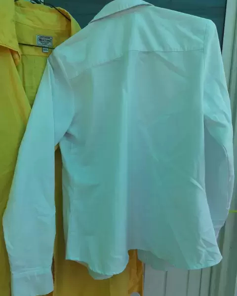 Blusa blanca. Camisa blanca, botones cubierto, acinturada, escote lindo es gruesa, genial para época de frío