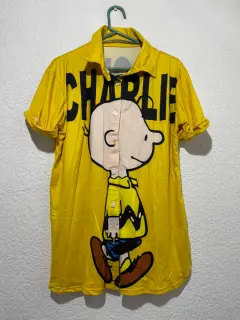 Blusa Charlie Brown. Blusa amarilla con estampado de Charlie Brown de cuerpo completo talla grande