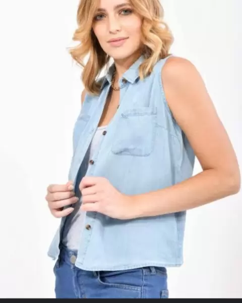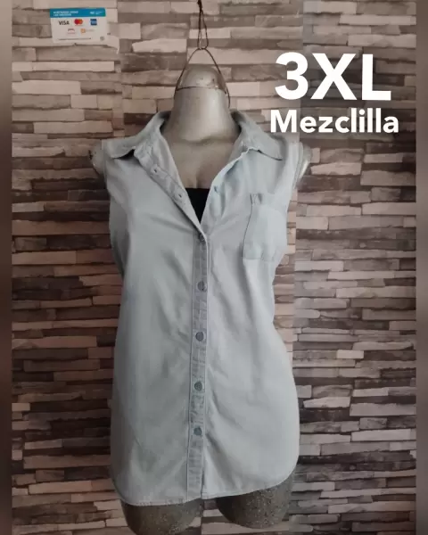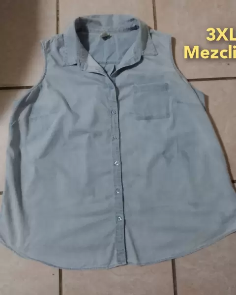 Blusa de mezclilla sin mangas 3XL. Blusa de mezclilla sin mangas, tela fresca amplia color azul claro, con bolsa en la parte delantera.