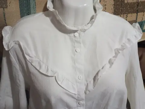 Blusa de vestir con olanes ❤️❤️❤️. Hermosisma blusa de vestir, cuello con olanes, manga larga con terminación de resorte, tela super suavecita, con botones al frente, no estira
