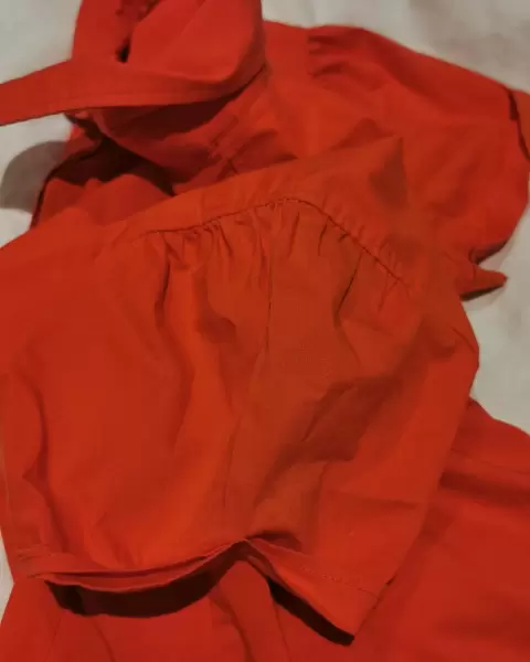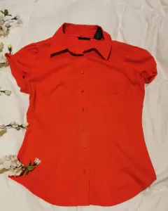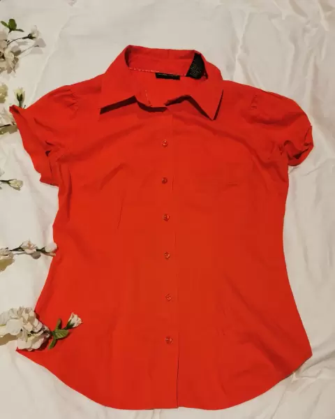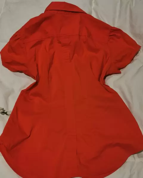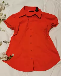 Hermosa blusa color naranja para darle ese color que le falta a tu outfit.Da muy buena forma, la manga es tipo globo, se observan las pinzas en la foto.