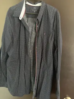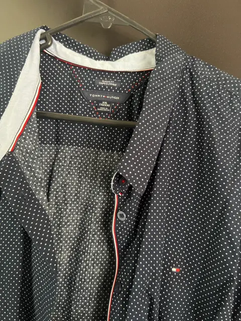 Blusa original Tommy Hilfiger. Blusa 2X, súper cómoda y fresca, manga larga, con logo bordado y franja de la marca sobre los botones