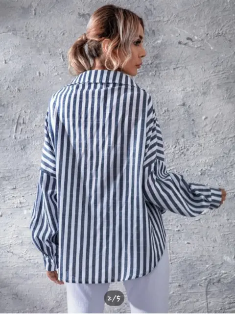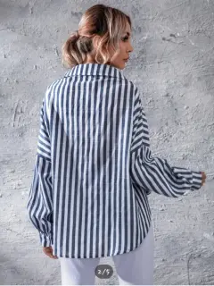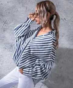 Blusa tipo oversize de manga larga, rayada, tela es de algodón,fresca, con fruncido al frente.