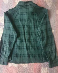 Blusa en buen estado a cuadros, con mangas, color verde, talla S. Pero es amplia(hombro a hombro 41.5 cms) (axila a axila 51.5 cms)