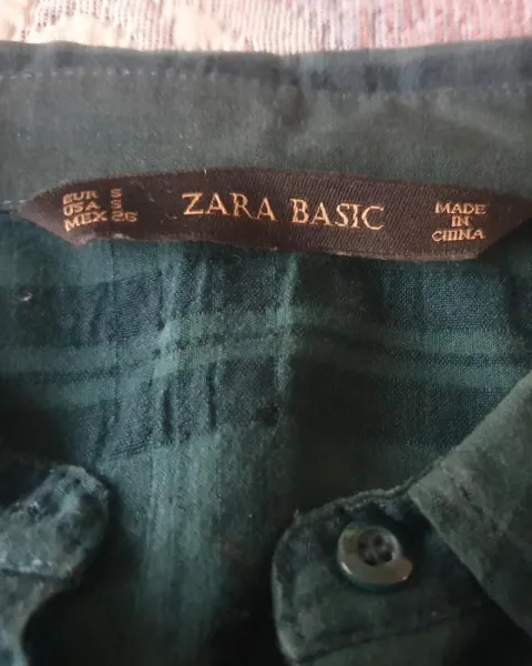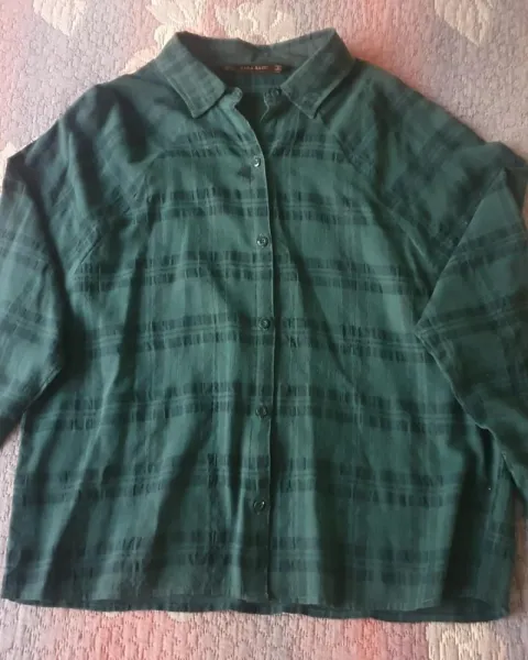 Blusa vaquera Zara. Blusa en buen estado a cuadros, con mangas, color verde, talla S. Pero es amplia(hombro a hombro 41.5 cms) (axila a axila 51.5 cms)