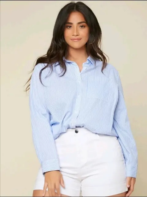 Blusa estilo camisa, linda y ligera. Moldea una buena figura la tela es con delgadas líneas blancas y azul cielo. La vendo pues me equivoqué y la pedí doble. Medidas en la última foto