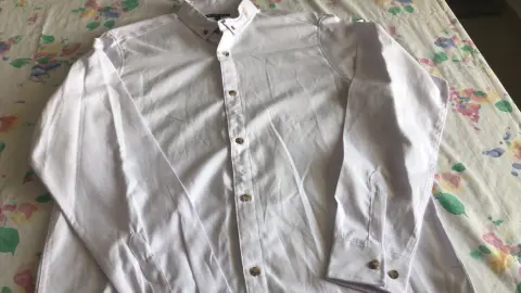 camisa de vestir color blanco tela muy ligera comoda casual y con botones