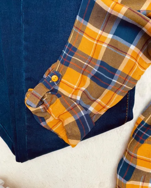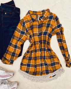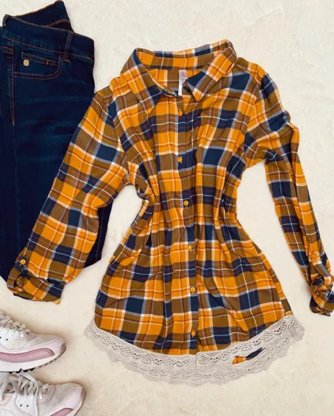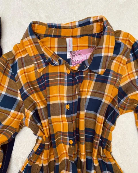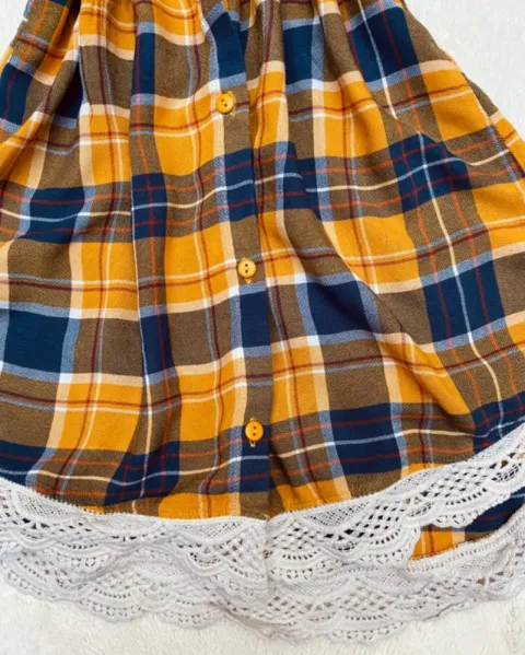 Camisa a cuadros amarilla. Hermosa camisa, dice talla XL pero no, queda perfecta a Mediana.