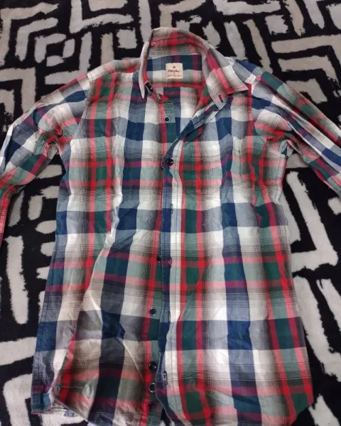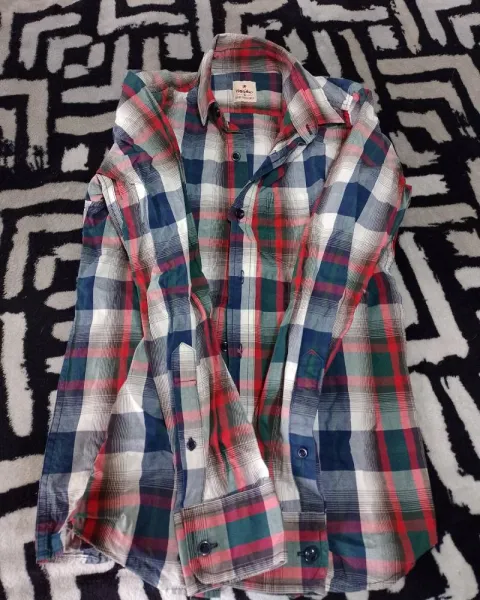 Camisa a cuadros puesta solo una vez se encuentra prácticamente nueva sin ningún detalle