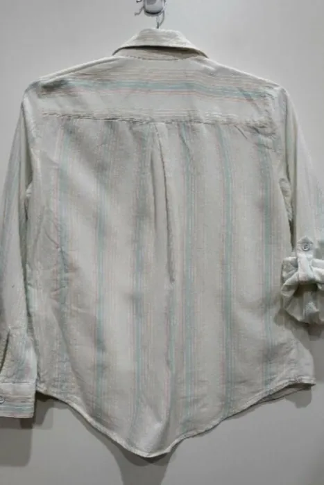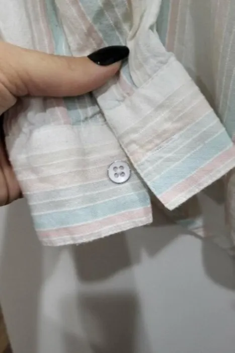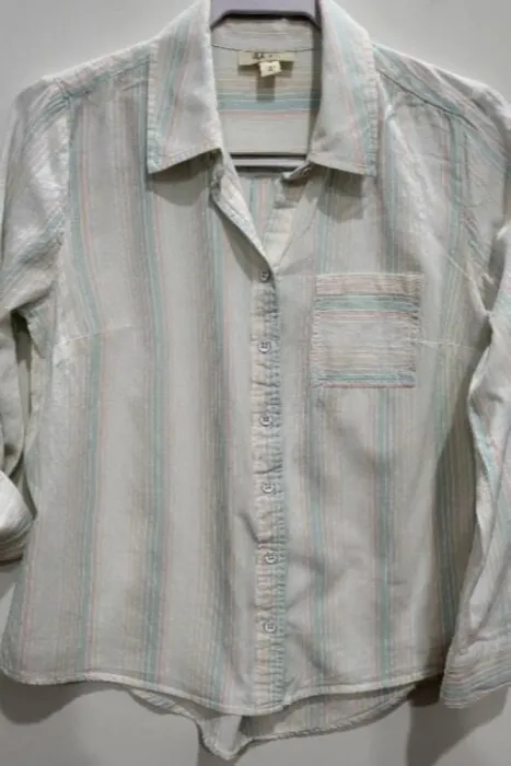 Camisa a Rayas Pastel Style & Co. Camisa marca Style & CoEl estampado es a rayas color pastelLas mangas se pueden enrollar100% algodónTalla PM. Medidas aproximadas: 48cm de axila a axila,62cm de largo desde el hombro.*TODAS MIS PRENDAS SE DESINFECTAN CON LYSOLLAVANDERIA PARA TU MAYOR TRANQUILIDAD*