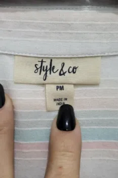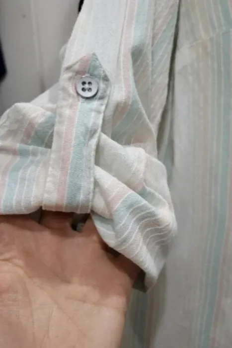 Camisa marca Style & CoEl estampado es a rayas color pastelLas mangas se pueden enrollar100% algodónTalla PM. Medidas aproximadas: 48cm de axila a axila,62cm de largo desde el hombro.*TODAS MIS PRENDAS SE DESINFECTAN CON LYSOLLAVANDERIA PARA TU MAYOR TRANQUILIDAD*