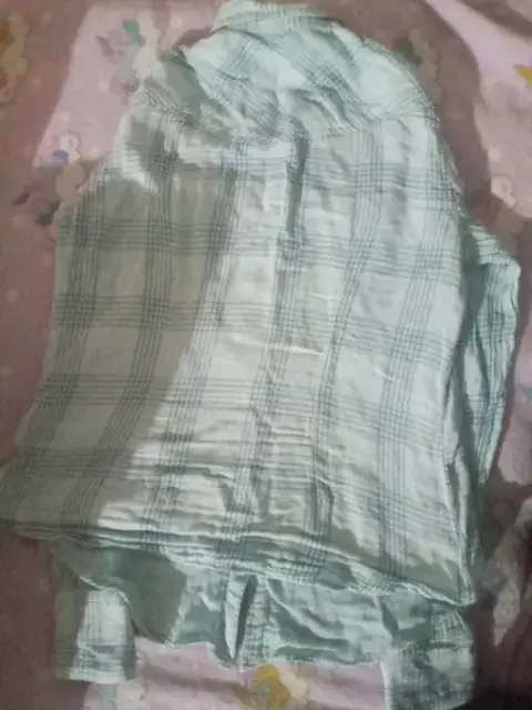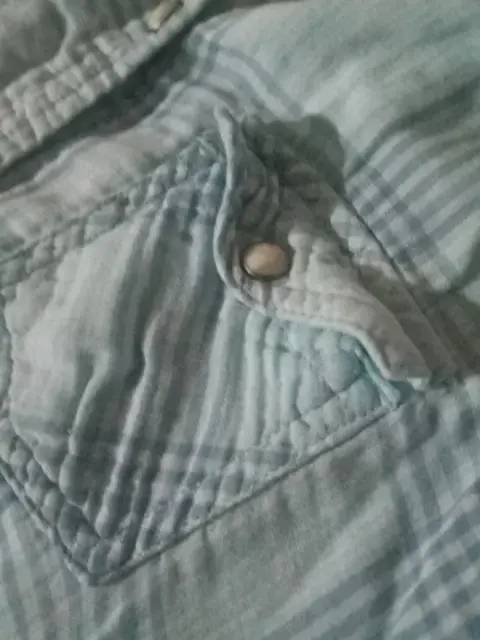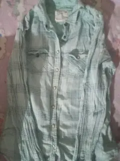 Camisa a rallas, con broche y bolsillos. Talla 8 marca American Eagle Outfitters
