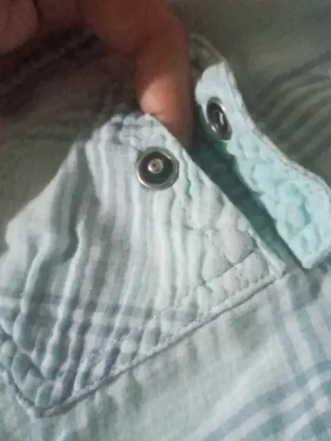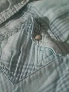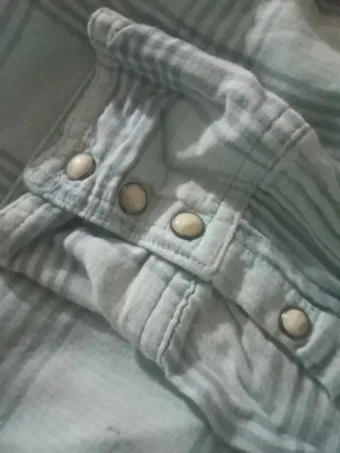 Camisa azul a rallas. Camisa a rallas, con broche y bolsillos. Talla 8 marca American Eagle Outfitters