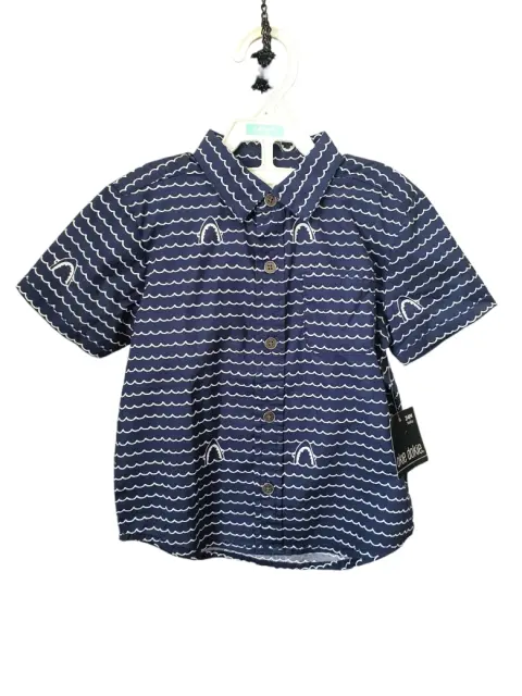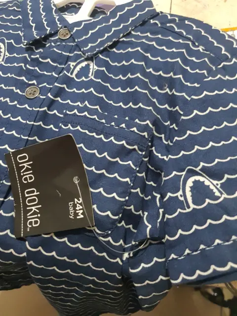 Camisa bebé. Camisa con estampado de mar y tiburón en color azul. Talla 24 M. Marca Okie Dokie.
