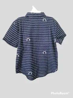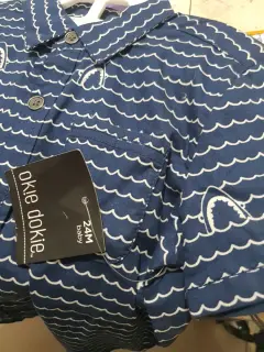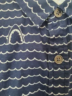 Camisa con estampado de mar y tiburón en color azul. Talla 24 M. Marca Okie Dokie.