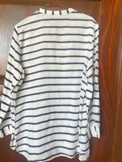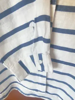 Muy combinable y hermosa camisa a rayas azul marino con manga larga y se dobla a 3/4, tiene todos sus botones, sin manchas 🌟 Mide: axila a axila 54cm, cintura 51cm, largo enfrente 71cm y atrás 73cm