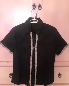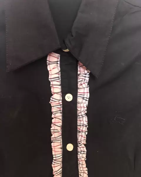 Camisa Burberry. Linda blusa color negro con detalles en holán a cuadros típicos de la marca. Su talla dice XL pero viene un poco más reducida, sus medidas son: Hombro a hombro 42 cmLargo 64 cm