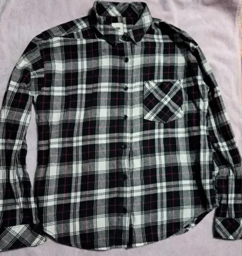 Camisa OversizeTiene rayas negras y rosasBolsita lado derechoTela 100% algodón