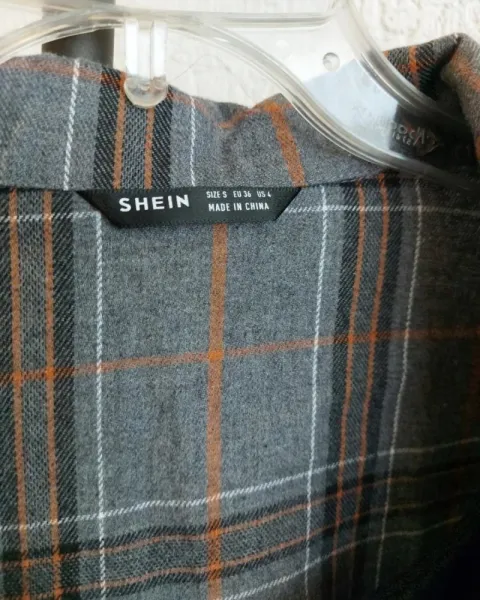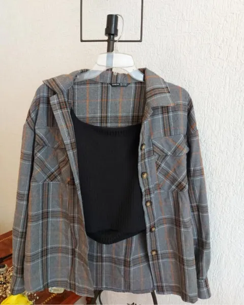 Camisa casual Shein. Tela calentita, biene un poco amplia así que queda bien en tallas S (con efecto overside) o en M. Las franjas se ven anaranjadas en la foto, pero son medio rosas en realidad.