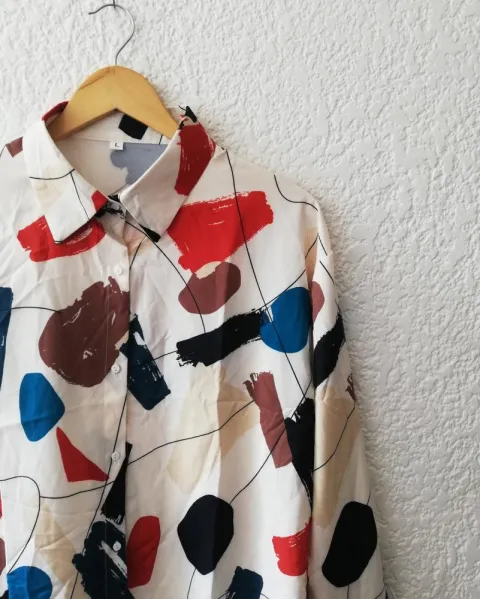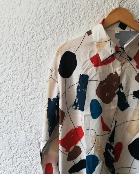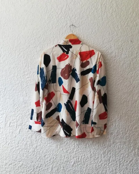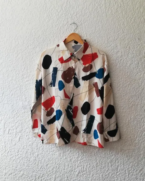 Camisa con estampado colorido.Talla grandeHombro a hombro: 53 cmLargo: 70.5 cm Pecho: 114cm