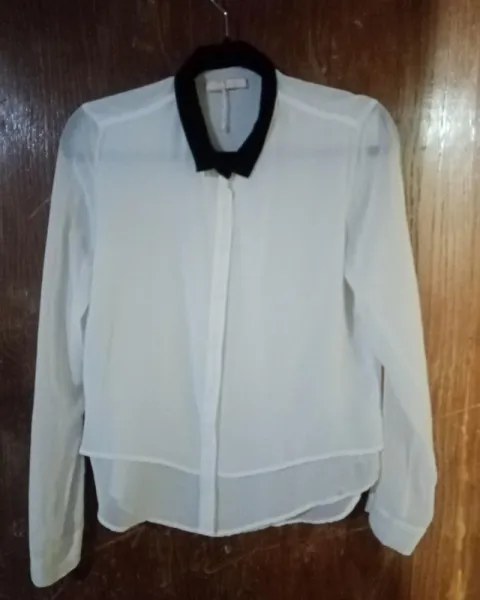 Bonita camisa color blanco cuello negro, con transparencia, super fresca, ideal para esta primavera!!