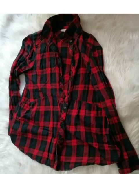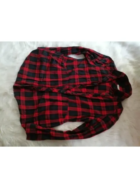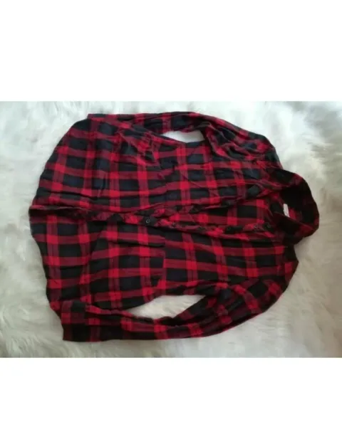 Camisa cuadros manga larga. Camisa manga larga de cuadros negro con rojo holgada de la cintura para abajo. La tela es gruesa
